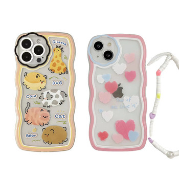 Ốp Mềm Trong Suốt Sóng Lượn Sóng Hình Động Vật Mùa Hè Cho Chó Mèo Có Dây Buộc Cho IPhone 12 11 13 Pro XS Max Ốp Lưng Cho Bé Gái Tuổi Teen